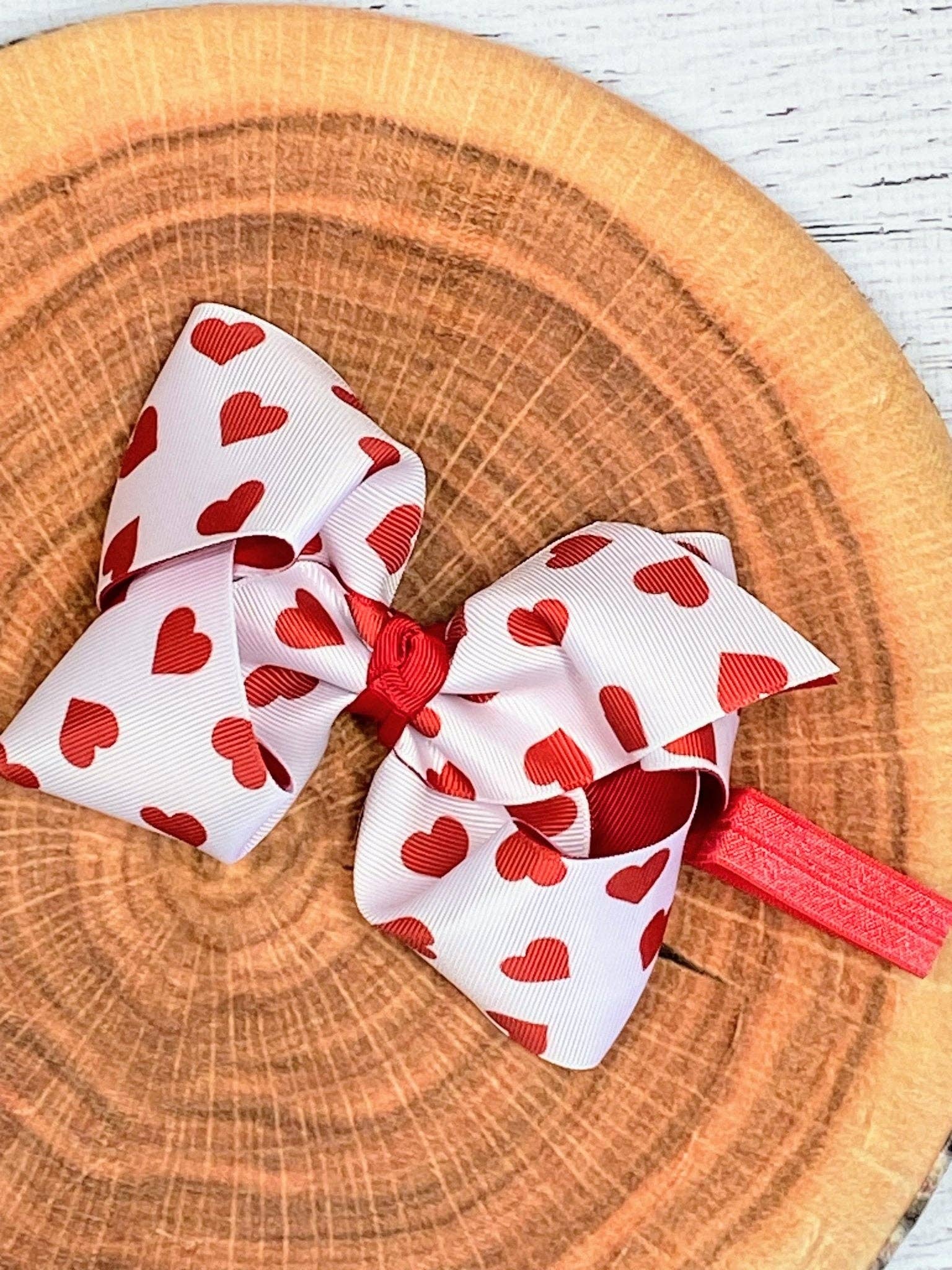 5" Heart Print Hair Bow Headband
